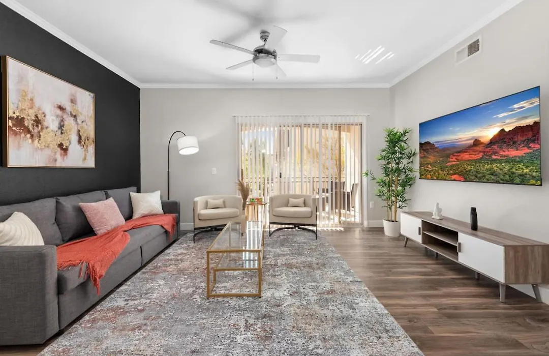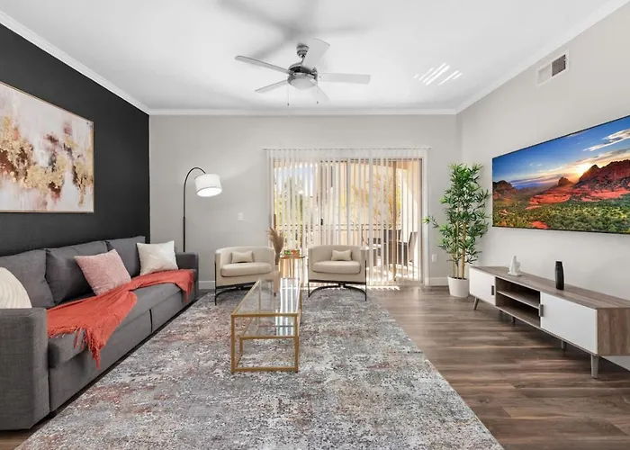 Con una piscina, el Apartamento Stylish 2Br - Scottsdale, Pet-Friendly, Sunrise Peak está situado a una distancia de 400 metros del Centro Acuático McDowell Mountain Ranch. Los huéspedes pueden aprovechar al máximo su estancia en este apartamento de 1000 m² participando en actividades como billar.